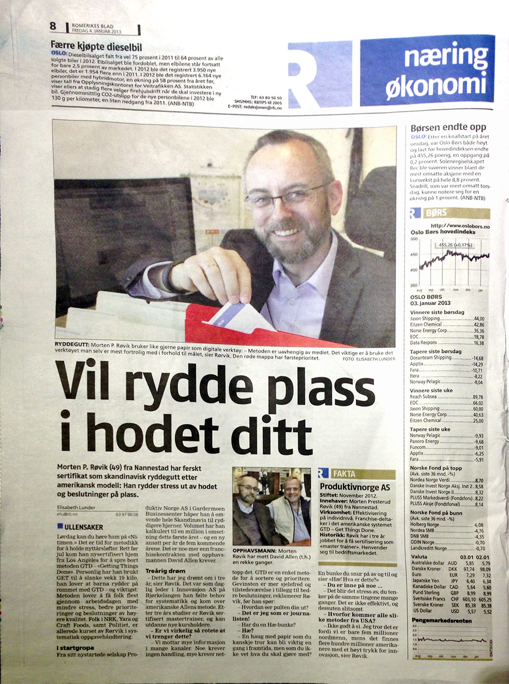 - Karl Ivar blir intervjuet av Ringsaker Blad om GTD-metodikken og lokale GTD-kurs