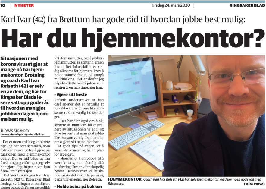 - Karl Ivar blir intervjuet av Ringsaker Blad om hjemmekontor.